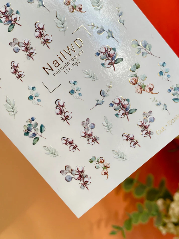 Waterdecal DeLuxe 116 FGC – Cotton & Eucalyptus Waterdecal Nail Stickers